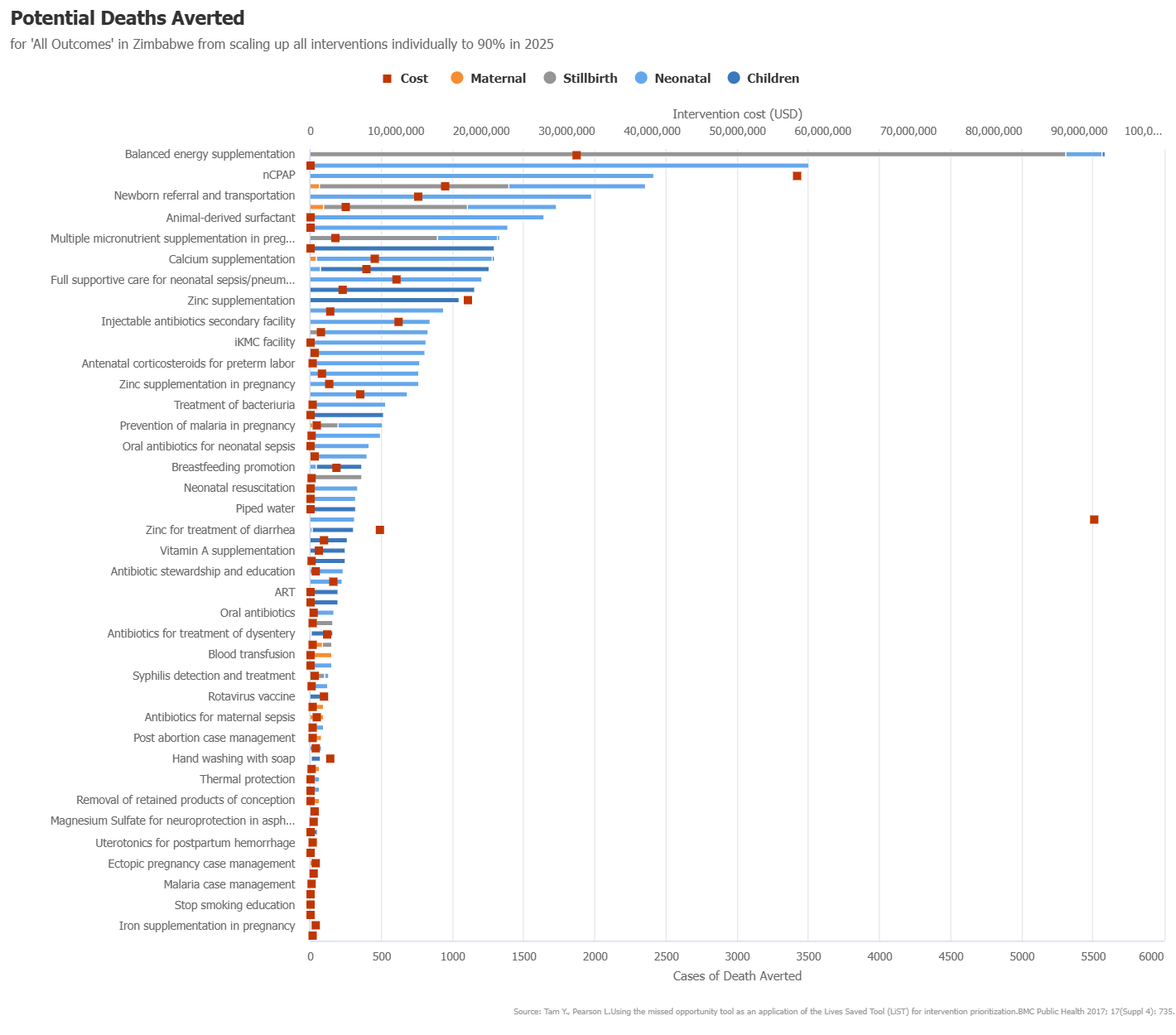 Ingredient-based costing analysis for maternal and neonatal health in Zimbabwe using the Lives Saved Tool (LiST).