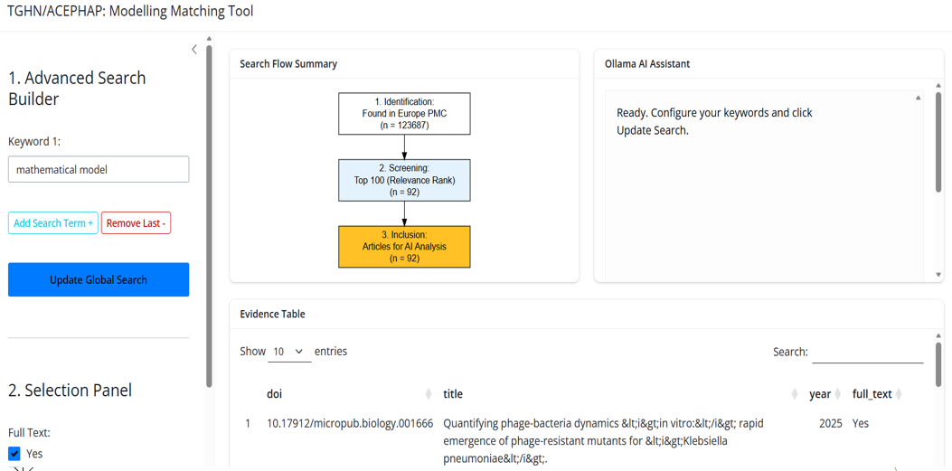 Designed for The Global Health Network, this tool enables researchers to look up modelling case studies and research, and analyse them using an Ollama chatbot.